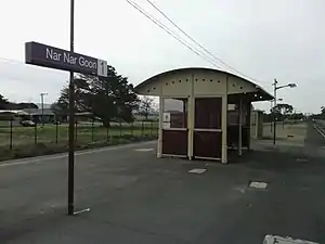 Nar Nar Goon railway station is located on the Gippsland line in Victoria, Australia. It serves the town of Nar Nar Goon, and it opened on 1 April 1881.[1][2]