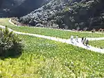 Narcissi have been used decoratively for a long time, a wreath of white-flowered N. tazetta having been found in an ancient Egyptian grave, and in frescoes on the excavated walls of Pompeii.[7] It is thought to have been mentioned in the Bible, for instance in the Book of Isaiah.[8] The rose mentioned here being the original translation into English from the Biblical Hebrew word chabatstsileth (Hebrew: חבצלת). This so-called "Rose of Sharon" being actually a bulbous plant, probably N. tazetta[9] which grows in Israel on the Plain of Sharon,[10] where it is a protected plant.[11][12] They make a frequent appearance in classical literature.[13]
