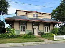 By September, the Boston Evening Transcript reported the opening of the railroad to Narragansett Pier "has had a marked effect on this very popular seaside resort", including the demise of the stagecoach previously used by visitors from points west or south.[3] The introduction of fast transportation to the resort town prompted a boom in construction of hotels and casinos.[4] Travelers from Providence could reach Narragansett Pier in approximately 80 minutes' time.[5]
