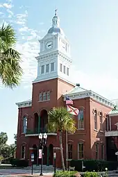 The Nassau County Courthouse, also known as the Old Nassau County Courthouse and the Historic Nassau County Courthouse, is a historic two-story red brick courthouse building located at 416 Centre Street in Fernandina Beach, Nassau County, Florida. Designed in the Classical Revival style, it was built in 1891 and features cast-iron Corinthian columns and a massive bell tower and steeple. Meneely and Co. of West Troy, New York, cast the bell for the tower, which was used as a fire alarm for many years.[1][2][3]