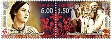 On September 30, 2011, the Ukrainian state postal company Ukrposhta circulated artistic postage stamps printed with a hook from two stamps to immortalize the first film opera in Ukrainian art: "75 years. Film-opera "Natalka Poltavka" (No. 1132, No. 1133), an envelope "The First Day," and a special redemption stamp. The artist for the stamps was Larisa Melnyk.[4] The materials for creating stamps were provided by the State Museum of Theater, Music and Film Arts of Ukraine. One of the postage stamps depicts the main character of the film, Natalka, played by actress Kateryna Osmyalovska. The second shows the key scene of the film, where the mother blesses Natalka and Peter for a life together.