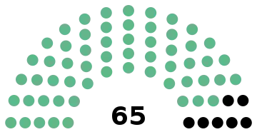 It consists of 65 members – 30 Somali (30 Issa) and 25 Afar – elected to serve five-year terms in multi-seat (4 to 37 each) constituencies. The first free multi-party parliamentary election since independence (1977) was held in 2003, with the ruling coalition, led by the People's Rally for Progress (RPP), receiving 62.7% of the vote.