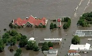 During the Iowa flood of 2008, the Cedar River overflowed its banks, flooding the museum and library with 8 feet (2.4 m) of water and causing severe damage to the exhibitions and contents. The damage was variously valued at $8 million or $9 million.[7] The flood occurred just days before the museum was scheduled to reveal its choice among four proposals for a tripling in the size of the facility.[4]