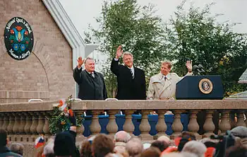 From 1983 onwards, the museum began to employ staff, and during the 1980s gained additional artifacts and financial contributions from Czech and Slovak Americans. The museum adopted its current name during this period. By the 1990s, the museum and library were outgrowing its space, and plans for a new facility began, with an architect creating plans for a new 16,000-square-foot (1,500 m2) building. Fundraising for the new facility began during this time. On October 28, 1993, groundbreaking took place for the new building. On October 21, 1995, the building was dedicated, with U.S. President Bill Clinton, Czech President Václav Havel, and Slovakian President Michal Kováč presiding over the ceremony.[1][2][3] Some 7,000 people attended the dedication event.[4]