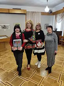 The volunteer group "Museum Bees" has been working in the museum since January 2015. For the soldiers fighting in the Ukrainian-Russian conflict in Eastern Ukraine, volunteers make camouflage nets and kikimora outfits. The initiative was started by volunteers under the direction of Yulia Kozachok, with support from the museum's staff and Anzhelika Rudnytska. 51 kikimora and 57 nets have been created by volunteers as of January 2016.[5] In 2015, volunteers took center stage in Lithuanian filmmaker Arturas Morozovas' documentary "Origin of Kikimora".[6] The movie traveled to Kyiv and the Eastern part of Ukraine in the summer of 2015.