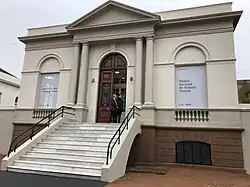 In July 2018 the museum opened its first permanent exhibition space in the grounds of a former prison, the Cárcel de Miguelete, which it shares with the Contemporary Art Space (Espacio de Arte Contemporáneo or EAC), also sponsored by the museum. The prison was in active use from 1888 to 1986, ceasing all operations in 1998, and is the oldest panopticon prison surviving in Latin America in its original form. The EAC took over the central block of the prison (from which the five wings could be observed) in 2010, before being officially inaugurated in 2018 at the same time as the MNHN exhibition space. The new MNHN was opened by Minister of Education and Culture María Julia Muñoz in a ceremony to mark the museum's 180th anniversary. The move to the former prison grounds had originally been planned in 2004 but fell apart due to lack of funding. Several other plans were made subsequently before the final decision was taken.[3][7] The museum's full collection and library were expected to move into the new accommodation later.[5][6][8][4]