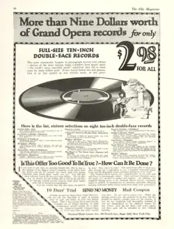 National Music Lovers Inc. print ad for grand opera phonograph records, 1924.