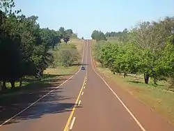 In the Zárate - Ceibas section, the road is a wide, 4-lane highway. Before the opening of the Zárate - Brazo Largo bridge, on 14 December 1977.[1] cars had to cross the Paraná de las Palmas and Paraná Guazú rivers by barge. The section between the rivers, in Talavera Island, was a treated, unpaved road.[2]