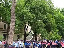 Regardless of constant protest by Albanian artists together with the political opposition, the demolition of the National Theatre of Albania started approximately on 4:30 am of the 17th of May 2020. The area was overrun by the State Police as they forcibly evacuated every person in the area protesting and detained many artists and high members of the Albanian opposition. Soon after the demolition started, people started gathering in the main boulevard just before the Ministry of Internal Affairs and the National Theatre to protest its demolition. This protest led to numerous other detainments due to the prohibition of gatherings and protests as per COVID-19 restrictions by the Government. [14]