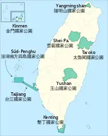 - ↑ 各國家公園基本資料表 (PDF) (in Chinese). Construction and Planning Agency, Ministry of the Interior, Taiwan. 6 June 2014. Retrieved 21 October 2014.