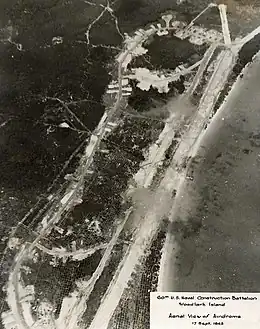 All construction was completed on November 1, 1943, and the most Seabees depart Naval Base Woodlark Island. A maintenance crew of 309 men with the 60th Battalion stay at Naval Base Woodlark Island until March 1944.[1][4][5][6]
