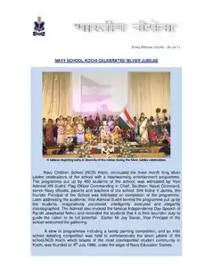 The Navy Children School, Kochi was started in the year 1986 under the Naval Education Society, Naval Headquarters, New Delhi. It is a Co-educational School. The school was officially started on 8 July 1986 under the name Naval Public School.
