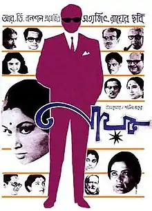 Nayak (also released under the translated title The Hero, and as Nayak: The Hero) is a 1966 Indian Bengali-language drama film composed, written, and directed by Satyajit Ray. It was Ray's second entirely original screenplay, after Kanchenjungha (1962). The story revolves around a matinee idol on a 24-hour train journey from Kolkata to Delhi to receive a national award. However, he ends up revealing his mistakes, insecurities and regrets to a young journalist, who realises that behind all his arrogant facade lies a deeply troubled man as his life's story is gradually revealed through seven flashbacks and two dreams.[1][2] The film starring Uttam Kumar in main protagonist and Sharmila Tagore played second lead.