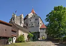 Nedvědice is known for the Pernštejn Castle, located on a rocky promontory above the Nedvědička. It is one of the most valuable and best-preserved castles in the Czech Republic with a rich history dating back to the 13th century. The castle is protected as national cultural monument.[6] Today the castle is owned by the state. It is open to the public and offers guided tours.[7]