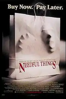 Needful Things is a 1993 American horror film based on Stephen King's 1991 novel of the same name. The film was directed by Fraser C. Heston (Charlton Heston's son; this is his only film without his father in the cast), and stars Ed Harris, Max von Sydow, Bonnie Bedelia, and J. T. Walsh. The film received mixed reviews, critics praised the performances and ending, but criticized its portrayal of its story and felt it inferior to its source material.