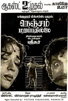 16. காந்தன் (18 August 1963). "நெஞ்சம் மறப்பதில்லை". Kalki (in Tamil). pp. 46–47. Archived from the original on 8 March 2023. Retrieved 9 August 2022.