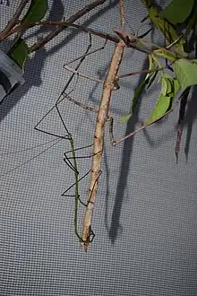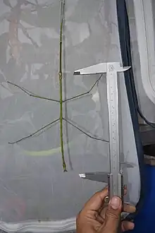 Nesiophasma giganteum[1] is a recently described species of stick insect, order Phasmatodea. It is endemic to Peleng.[2] Adult females are large, typically measuring 250–300mm (10–12 inches) in body length. Both sexes are wingless.