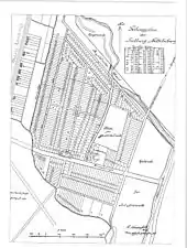 Characterized by brick-built single or double houses with mansard roofs and hipped gables, the main entrance was located on what is now considered the first floor, while utility and cellar rooms were on the ground floor due to the high groundwater level and the risk of flooding.[2] Most houses had a stable attached for small livestock. Each settlement house had a large vegetable garden bordered by drainage ditches. By August 1927, 235 houses were already occupied.[3]