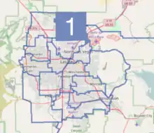 District 1 is located just north of Las Vegas in Clark County, including much of North Las Vegas and smaller sections of Sunrise Manor and Las Vegas itself.[3]