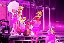 Since its release, "Never Too Late" has only been performed on four of Minogue's tours. Its first appearance was in the Enjoy Yourself Tour. It featured a small dance before hand and then the original. Its next performance was not for 11 years when Minogue performed it on her On a Night Like This Tour in 2001, which was launched to promote Light Years. It was performed as part of "Hits Medley" which featured 5 songs from her PWL days: "Step Back in Time", "Never Too Late", "Wouldn't Change a Thing", "Turn It into Love" and "Celebration" respectively. It was then set to be part of her KylieFever2002 set list as a space age version to feature as the opening to the act entitled "Cybertronica", but was removed at the last minute.[5] It made an appearance on Minogue's Kiss Me Once Tour in 2014. It featured in the "Dollshouse Medley" which featured four songs from her PWL days: "Hand on Your Heart", "Never Too Late", "Got to Be Certain" and "I Should Be So Lucky" respectively. In this segment of the show, Minogue began in a pink shawl and took a layer off at the beginning of each song, before ending in a corset and knickers to sing "I Should Be So Lucky" in a bath, alluding to a scene in the song's music video. More recently, it is performed on her Summer 2019 Tour.