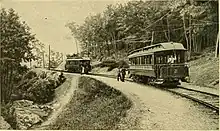 Operations began during the summer of 1890 with cars run by Edison No. 6, double reduction 15-horse-power streetcar motors. When empty, the cars weighed thirteen tons; when operating, they frequently carried one hundred passengers. Newer cars had two new twenty-five-horse-power, single reduction motors.[1] By 1891, there were six 38 foot (12 m) long cars that were of the Brill double truck pattern. Through the excellence of the motors and construction and the special oil boxes there was almost no noise.[1]