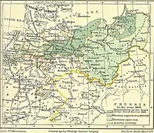New East Prussia (German: Neuostpreußen; Polish: Prusy Nowowschodnie; Lithuanian: Naujieji Rytprūsiai) was a province of the Kingdom of Prussia from 1795 to 1807. It was created out of territory annexed in the Third Partition of the Polish–Lithuanian Commonwealth and included parts of Masovia, Podlaskie, Trakai voivodeship and Žemaitija. In 1806 it had 914,610 inhabitants with a territory of less than 55,000 km2 (21,000 sq mi), mainly Poles, Lithuanians, Jews and Belarusians.