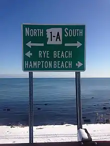 New Hampshire Route 1A is an 18.32-mile (29.48 km) long state highway located in southeast New Hampshire. The route runs along the Atlantic coastline from the Massachusetts border north to Rye, then turns toward downtown Portsmouth. The southern terminus is at the Massachusetts state line in Seabrook where it continues south as Massachusetts Route 1A. The northern terminus is at a junction with U.S. Route 1 in downtown Portsmouth. For the length of the road's run along the shore, its local name is Ocean Boulevard. In the northern part of Rye, it is known as Pioneer Road, and in Portsmouth, it is known as Miller Avenue and Sagamore Avenue.