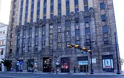 The New Jersey Bell Headquarters Building is located in Newark, Essex County, New Jersey, United States. The building was built in 1929 by the New Jersey Bell Telephone Company and was added to the National Register of Historic Places on September 21, 2005. The art deco building was designed by Ralph Thomas Walker of the architectural firm Voorhees, Gmelin, and Walker. The buff brick and sandstone façade is decorated with pilasters created by sculptor Edward McCartan. Since the building's opening, soft orange lights have bathed its upper floors at night. The building is 20 stories and 275 ft (84 m) tall.[3] The building later became headquarters for Verizon New Jersey, Inc.[4][5][6]