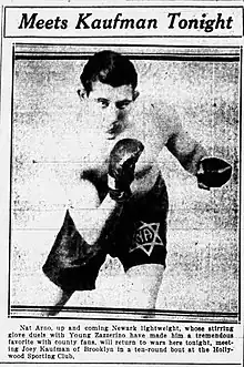 The New Jersey Minutemen were a militant anti-fascist group that operated in Newark, New Jersey from 1933 to 1941. They were antagonists of the pro-Nazi German American Bund and the Christian Front group inspired by Charles Coughlin's Social Justice doctrines. The commander of the Minutemen was a former featherweight[1] and lightweight[2] class boxer of Jewish ancestry, Nat Arno (April 1, 1910 – August 8, 1973).[3][4] The group was organized at the behest of local criminal leader Abner Zwillman.[3] The membership consisted of "tough guys...recruited from Zwillman's Third Ward gang."[3] According to one historian, "The mob hastened the Bund's demise by introducing mortal risks to its leadership."[5]