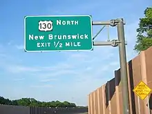 Signage for the interchange with US 130 in East Windsor. Although Route 133 is a freeway, none of its interchanges have exit numbers.