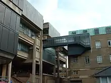 By the mid-1950s it was obvious that the substantial problems with the New Museums Site's accommodation were going to require a "radical" re-evaluation of the site's use.[11] Various schemes were considered, including ones by Murray Easton (1956) and Denys Lasdun (1960); the latter included a several towers up to 190 feet and would have greatly affected the view from The Backs, but was scaled down after a public enquiry in 1964 limited the height of the towers. Lasdun resigned and was replaced by Arup Associates, who further altered Lasdun's plan, reducing the towers to 80 feet.[2] The centre of the site was redeveloped to Arup's plan in 1966–71, with the loss of most of the original buildings by Salvin to accommodate the Arup Building (now the David Attenborough Building), accommodating zoology and metallurgy.[2][4] In 1974, the Cavendish Laboratory moved to a new science site to the west of the city, now known as West Cambridge.[2][11]