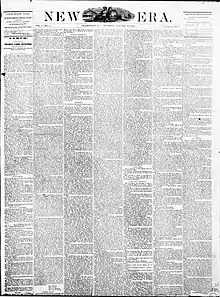 New National Era (1870–1874) was an African American newspaper, published in Washington, D.C., during the Reconstruction Era in the decade after the American Civil War and the Emancipation Proclamation.[1] Originally known as the New Era, the pioneering abolitionist and writer Frederick Douglass renamed it in 1870 when he became the newspaper's publisher and editor.[2]