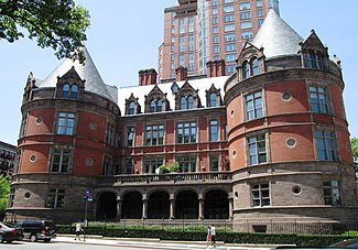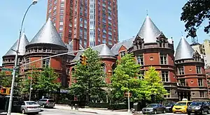 The New York Cancer Hospital (NYCH) on the Upper West Side of Manhattan, New York City was a cancer treatment and research institution founded in 1884. The building was located at 455 Central Park West[2] between West 105th and 106th Streets, and built between 1884 and 1886 with additions made between 1889 and 1890; it was designed by Charles Coolidge Haight in the Late Gothic and French Chateau styles – inspired by the chateaux of the Loire Valley. It was the first hospital in the United States dedicated specifically for the treatment of cancer, and the second in the world after the London Cancer Hospital.[3][4][5] After outgrowing the original building and moving, it became what is today known as Memorial Sloan-Kettering Cancer Center.