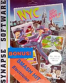 N.Y.C. The Big Apple (also known as New York City) is an action game written by Russ Segal for the Atari 8-bit family and published by Synapse Software in 1984.[1] Segal previously wrote Picnic Paranoia for Synapse.[1] New York City was ported to the Commodore 64 by Greg Nelson.