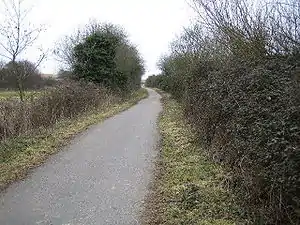 Newchurch railway station, was an intermediate station situated on the edge of Newchurch village [1] on the line from Newport to Sandown incorporated by the Isle of Wight (Newport Junction) Railway in 1868,[2] opened in 1875 and closed 81 years later.[3] Despite its rural location a "respectable"[4] number of families alighted at the simple station, "little more than a wooden hut".[5] The nearest location to the site is a bungalow, Newchurch Crossing.[6]