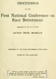 16. "Proceedings of the First National Conference on Race Betterment: January 8, 9, 10, 11, 12, 1914, Battle Creek, Michigan". Archived from the original on 2016-04-26. Retrieved 2016-04-19.