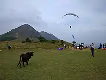 Paragliding at Ngong Ping. The hill in the background is Pyramid Hill.