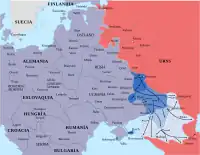 The Niños's fate changed with the start of the Second World War. Soviet interest in the Niños decreased after the end of the Spanish Civil War, and with the signing of the Ribbentrop-Molotov Pact in August 1939, which assured non aggression between the Soviet Union and Nazi Germany. Soon after Germany, and then the Soviet Union invaded Poland, creating a new boundary between the two powers. The pact was fully terminated in June 1941. The Niños houses were dismantled due to the dangers of Nazi invasion. When the German army besieged Leningrad, and moved towards Moscow, and into Ukraine in the south, all the areas where the Spanish children had been placed were compromised. The Niños children in the two houses of Leningrad endured the blockade of the city by the German army during the harsh winter of 1941 to 1942.[8] 300 Niños children were evacuated once the fence could be opened, crossing the frozen lake Ladoga in trucks.[12] Gradually, and with the agreement of the Communist Party of Spain, the different Niños houses were evacuated to areas considered safer, in some cases quite remote, near the Ural Mountains and Central Asia.