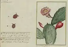 In Oaxaca, he purchased from Indians and blacks the insects and the cacti they parasitize, and some pods of vanilla, which he jumbled among commonplace herbal specimens in his collecting case. Once safely ashore in Saint Domingue he established a plantation of the nopal cactus in the botanical garden, the jardin du roi that he established at Port-au-Prince[3] and sent further cactus pads and cochineal insects to the scientific academy at Cap Français. With the success of the adventure he was rewarded with the title of Botaniste du roi and an annuity of 6000 livres. However, within two years of his return he was dead of "malignant fever" at the age of forty-one.[4]