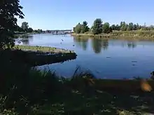 ![]() Nicomekl River, May 2006, looking west from 152nd St. Surrey, BC | |
