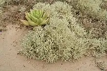 Niebla arenaria is a fruticose lichen that grows along the Pacific Coast of North America in the fog regions of the northern peninsula of Baja California from near Colonet south to Morro Santo Domingo. The epithet, arenaria, is in regard to the species growing on sand.[1]