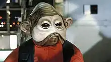 Nien Nunb was brought to life by both a puppeteer and as a costumed-actor during the film. Initially, he was just to appear in the briefing room scenes, and the Endor celebration. For these appearances he was portrayed by stuntman Richard Bonehill, in costume and mask. However, Nunb was later chosen, by series creator George Lucas, to appear in the Millennium Falcon, as Lando Calrissian's co-pilot. Since the character now had dialogue, it was decided that the mask would be reworked into a puppet, with mechanisms to allow for moving lips and eyes. For these scenes, in the cockpit, the role was handed over to puppeteer Mike Quinn.[1]