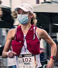 In January 2022, Brinkman joined the NN Running Team.[8] At the Rotterdam Marathon in April, she ran a nearly-4-minute personal best of 2:22:51 for second.[1] Her time broke the Dutch record set in 2003 by Lornah Kiplagat.[9] This result also meant that in August, she travelled with the fastest time of the field to the 2022 European Athletics Championships in Munich, where she ended up finishing third in the race after experiencing stomach problems.[4][10] As well as these starts in road races, Brinkman also continued to line up in trail races. Before the European Championships, she had already won at Zegama-Aizkorri in the Basque Country, and at Pikes Peak Ascent and Flagstaff Sky Peaks in the USA.[11] She finished off her season by winning the Madeira Ocean and Trail Five-Day Stage Race, which secured herself the overall Golden Trail Series win.[4]