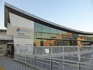 Nishi-Yokohama Station is served by the Sagami Railway Main Line, and lies 1.8 kilometers from the starting point of the line at Yokohama Station.