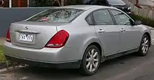The Nissan Teana (Japanese: 日産・ティアナ, Hepburn: Nissan Tiana) is a mid-size sedan produced by Japanese automobile manufacturer Nissan. It was exported as the Nissan Maxima and Nissan Cefiro to certain markets. It replaces the Nissan Bluebird, Laurel and Cefiro. It shares a platform with the Nissan Maxima and Nissan Altima which are sold in North America, as well as the Japanese market Presage minivan. The Teana has been available in East Asia, Russia, Ukraine, South Asia, Southeast Asia, Australia, New Zealand, Latin America and the Caribbean.