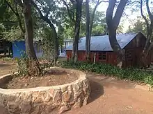 The house was located on 23 Mitchell street and consisted of four bedrooms, one bathroom upstairs and one downstairs, a lounge, a room used as a dormitory, and a courtyard.[17] Renovations and repairs were needed, in addition to furniture and basic house necessities. To raise funds for the completion of the house, Gail, a former public relations consultant, held a "kitchen tea" in which a wish list was created and publicized in the media and to those who were potential contributors.[17] At the tea, Gail explained the reasons behind the creation of Nkosi's Haven. She explained that Nkosi's Haven was to offer a kibbutz style of living in which residents would take turns at cooking, cleaning, caring for the children, and helping care for each other as needed.[17] Gail also told the guests that they already reached capacity for residence at the house. At the time, the house fit nine mothers and their children with presumed costs starting at R28,000 monthly.[17] The results of the kitchen tea were successful and Gail managed to fundraise R45,000 worth of furniture and equipment, free electrical services, along with appliances valued at R30,000 for the nursery and dormitory.[17]
