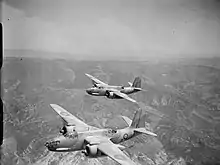 The squadron, part of 326 Wing, moved to Blida in Algeria in November 1942,[28] with the role of supporting the British First Army.[29] The Bisley, however, had poor performance and was vulnerable to fighter attack, and the squadron was therefore largely confined to night bombing.[30] Bisley losses continued to be high, and in January 1943 the squadron relinquished its Bisleys to 614 Squadron, and waited for new aircraft, receiving more Bisleys in February and returning to operations.[31] In March the squadron finally received more modern equipment, replacing its Bisleys with Douglas Boston light bombers, returning to operation with its new aircraft on 21 April.[32][33]