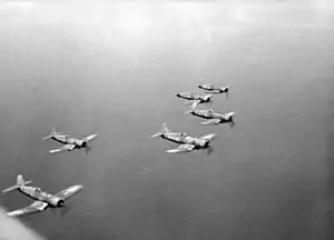 After being formed in June 1943 at RNZAF Base Woodbourne, No. 18 Squadron was based in New Zealand until September 1943 when it deployed to Palikulo Bay Airfield on Espiritu Santo. The following month, the squadron moved to Ondonga Airfield on New Georgia, remaining there until it returned to Santo in January 1944. The squadron deployed to Piva Airfield on Bougainville between January and March 1944 and then moved to Kukum Field on Guadalcanal in May 1944, returning to Bouganville the following month. The squadron returned to Santo in August 1944, and then moved again to Guadalcanal in September, remaining there until November.[1] On 22 November 1944, No. 18 Squadron deployed from Guadalcanal to Green Island assuming responsibility for local patrols and "Dumbo" air-sea rescue escort missions from No. 20 Squadron RNZAF.[2] In January 1945, the squadron returned to Guadalcanal, before being deployed the following month in support of Australian ground troops fighting the Bougainville Campaign. On Bougainville they participated in combat operations over the course of two periods: February–April 1945 and June–October 1945.[1]