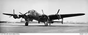 576 Squadron commenced operations in the night of 2/3 December 1943, when seven Avro Lancasters were sent out to bomb Berlin.[6] FSGT John Booth RAAF and crew in UL-R2 (W4123) failed to return from this operation. Eleven months later 576 Squadron moved to RAF Fiskerton, a little way outside Lincoln. During its brief period of existence 576 Squadron operated only one type of aircraft, the Avro Lancaster four-engined heavy bomber. It carried out 2,788 operation sorties with the Lancaster, with the loss of 66 aircraft.[7] The last bombs of the squadron were dropped on 25 April 1945, when 23 of the squadrons aircraft bombed Obersalzberg with no loss of personnel. During this period, 576 Squadron flew 2,788 operational sorties; 67 aircraft were lost, including two abandoned over France in February 1945. The Jamaican airman Billy Strachan, who would later become a pioneer of black civil rights in Britain, flew 15 operations the pilot of an Avro Lancaster with the squadron.[8]