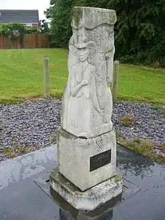 The Celia Fiennes Waymark, sculpted by Jeff Eldridge, with an inscription on the base reading: